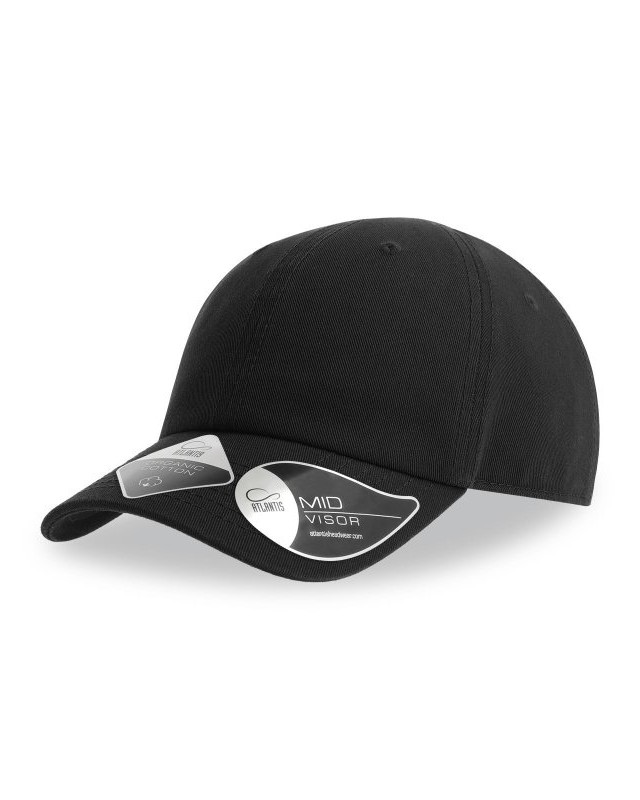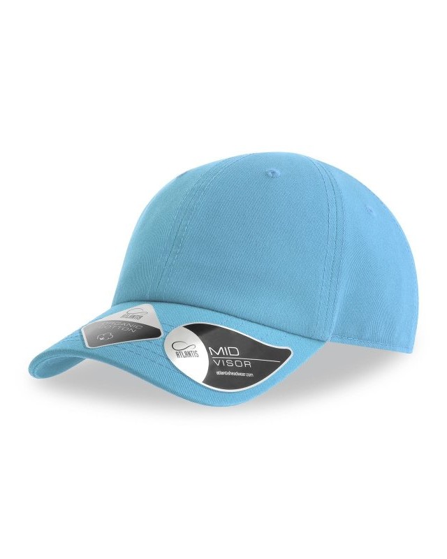 100% cotone organico certificato. Cappellino 6 pannelli destrutturato da bambino in stile dad hat con mid visor e chiusura a strappo.
