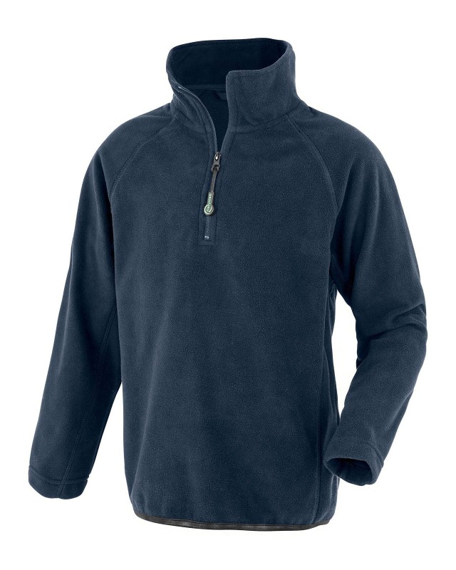 100% poliestere riciclato. Pile da bambino mezza zip, con zip YKK NATULON Eco-Friendly, orlo e polsini elasticizzati, cuciture decorative, facile da lavare, asciugatura rapida, PFC free.