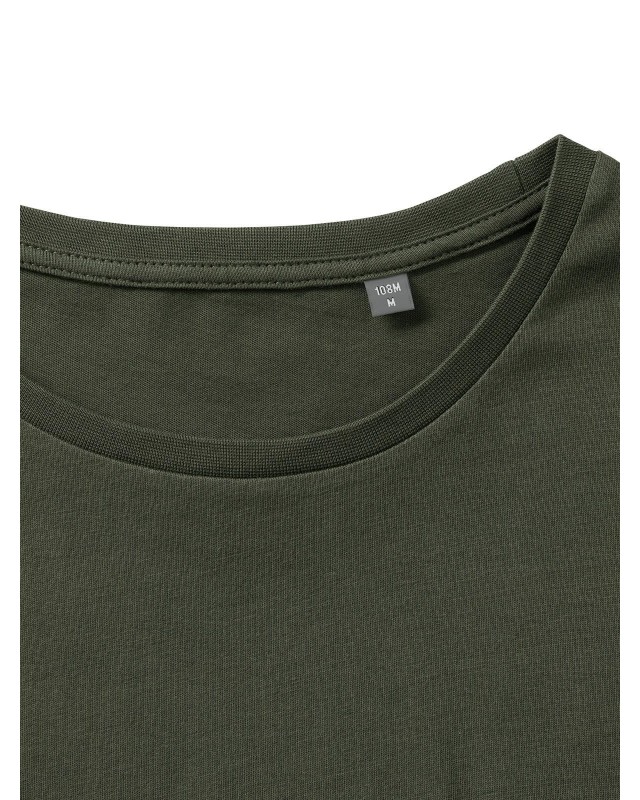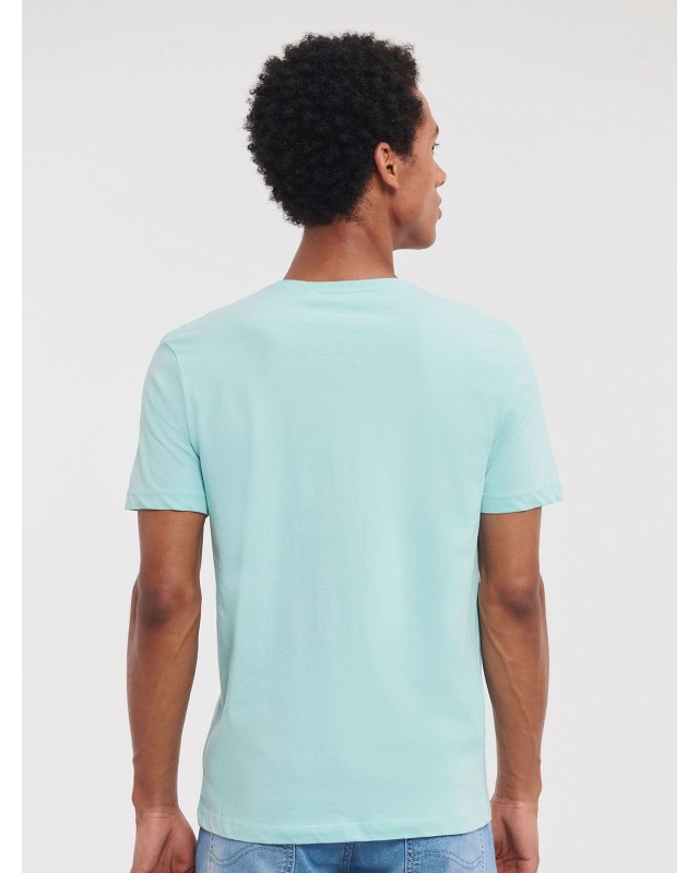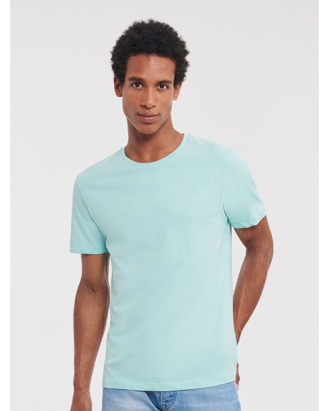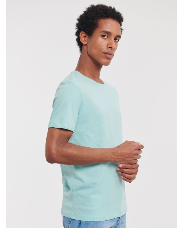 100% Cotone ring-spun organico. T-shirt da uomo con nastro di rindorzo spalla-spalla, fascia del colletto in lycra, cuciture laterali, vestibilità sagomata. (Col. LX 97% cot 3% visc.)