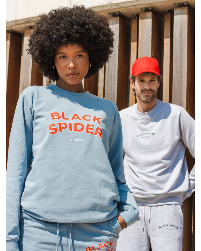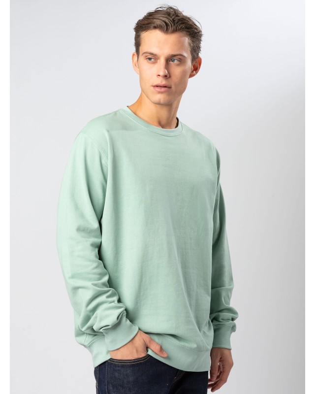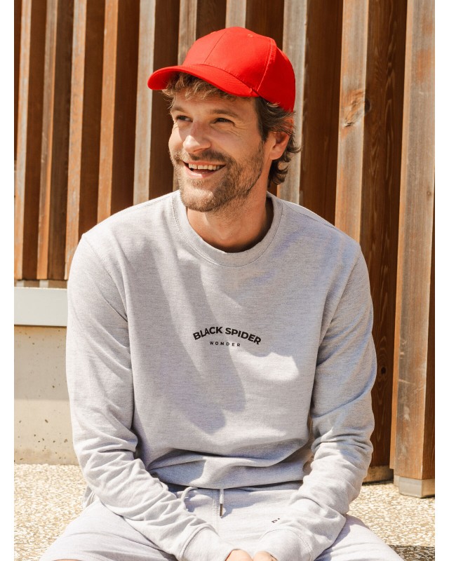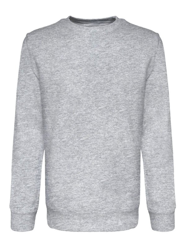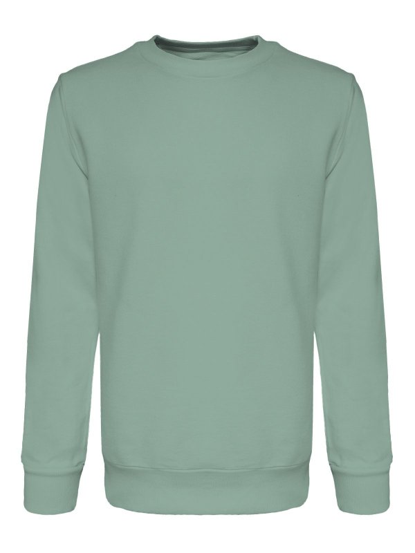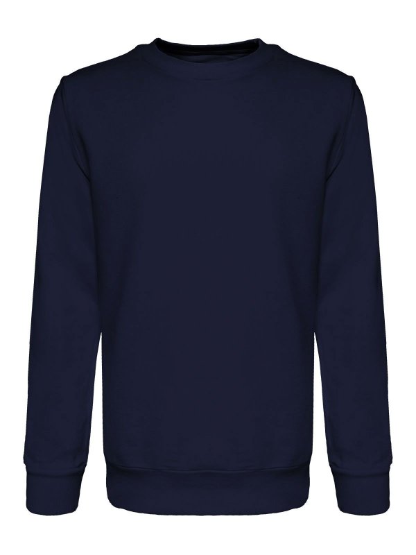 80% cotone 20% poliestere. Felpa girocollo in french terry. Collo, polsini e orlo inferiore in costina, rinforzo sul colletto, maniche set-in, struttura con cuciture laterali. Etichetta strappabile. Parte esterna: 100% cotone, parte interna: 50% cotone, 50% poliestere.