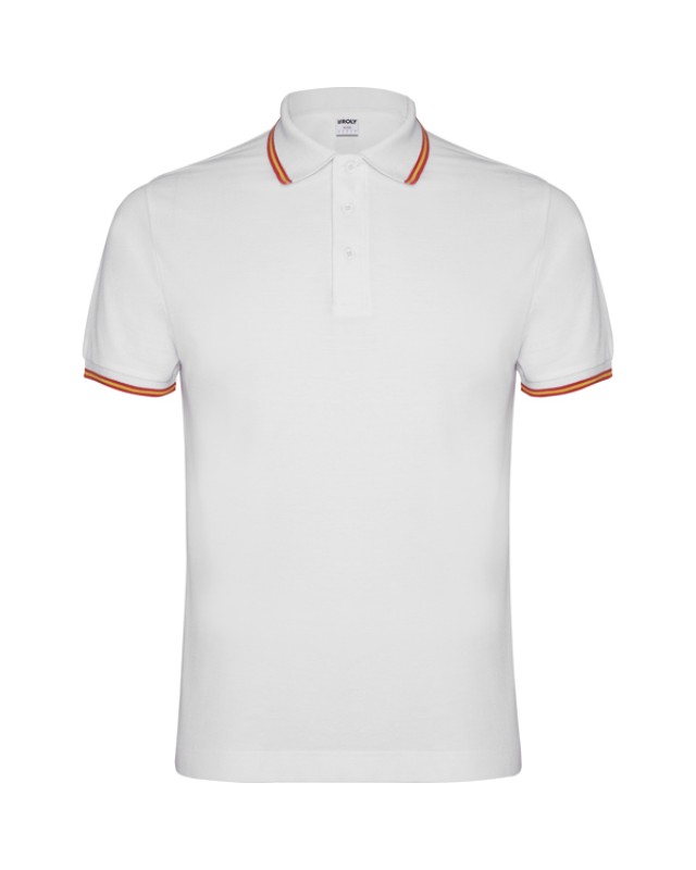 Polo manica corta 3 bottoni, colletto e polsini in jaquard. Copri cuciture di rinforzo nel colletto. Bandiera ricamata sul retro. - Genere: Uomo - Composizione: 60% cotone / 40% poliestere , pique. Bianco: 210 g/m². Colorato: 190 g/m².