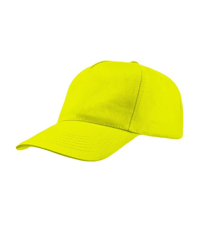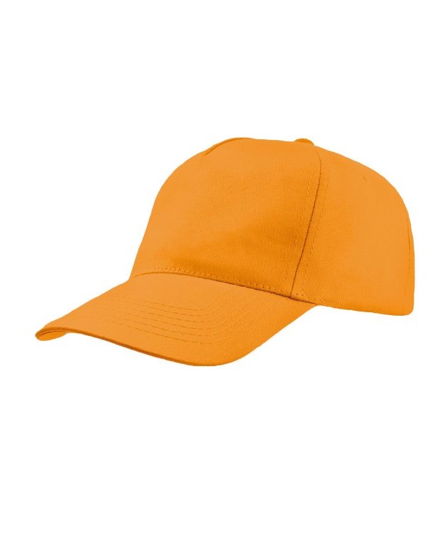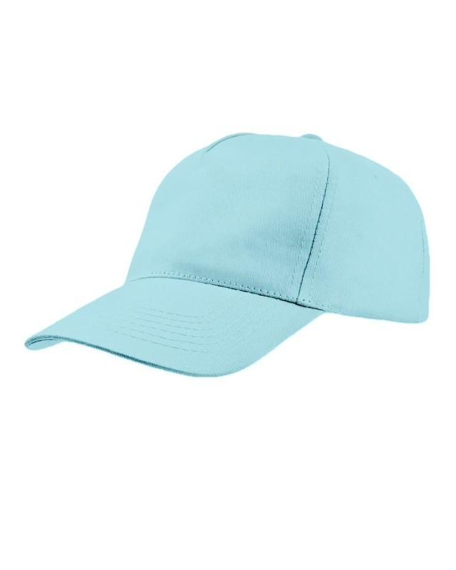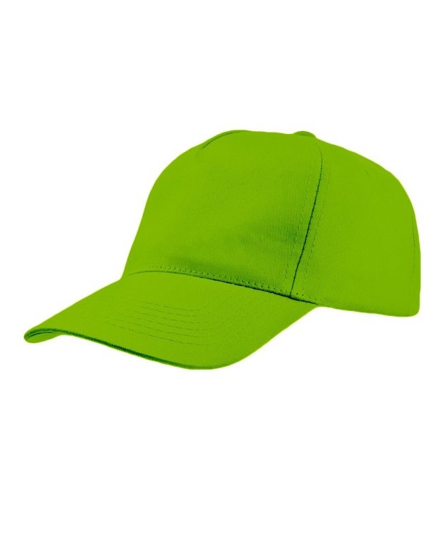 100% cotone. Berretto da bambino a 5 pannelli con chiusura in velcro, fascia anti-sudore in poliestere, occhielli cuciti, pannello frontale rigido, visiera precurvata.
