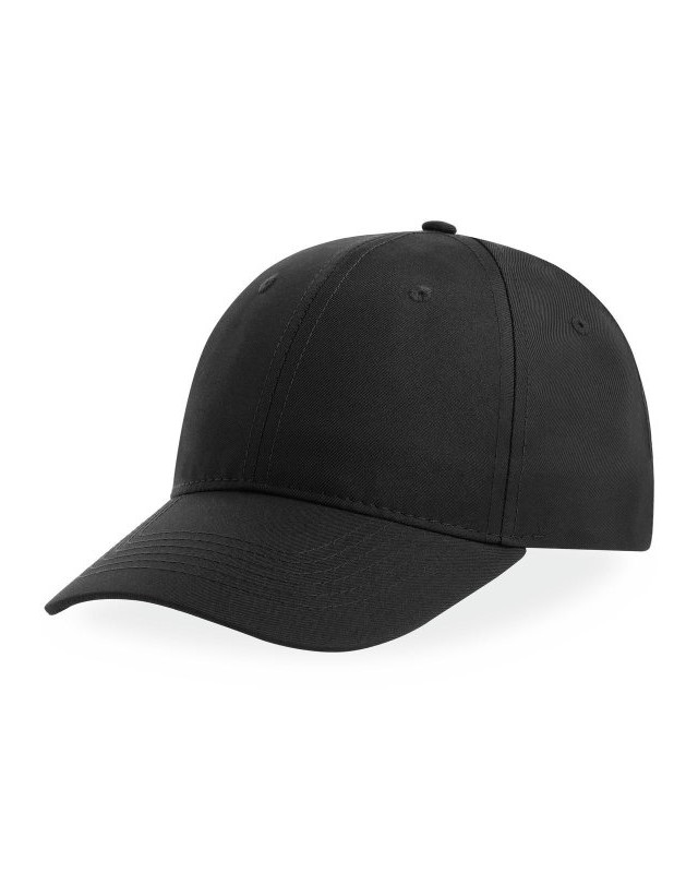 100% poliestere twill riciclato certificato. Classico cappellino da baseball strutturato a 6 pannelli, cuciture in tinta, visiera curva e 6 occhielli.