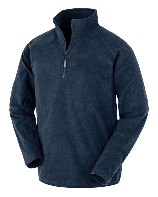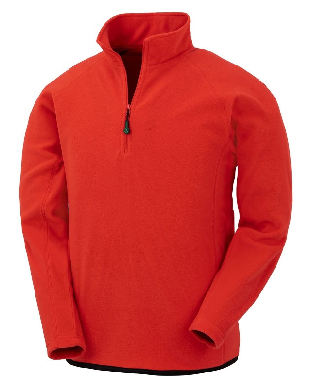 100% poliestere riciclato. Pile mezza zip, con zip YKK NATULON�Eco-Friendly, orlo e polsini elasticizzati, cuciture decorative, facile da lavare, asciugatura rapida, PFC free.