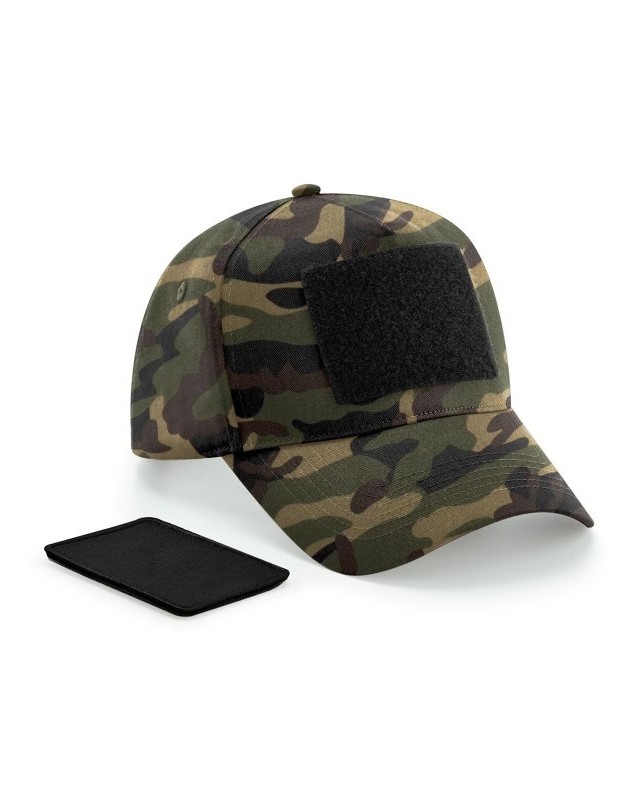 100% cotone twill. Cappellino a 5 pannelli, visiera pre-curvata, occhielli di ventilazione cuciti, chiusura regolabile snapback. Con patch Rip-Strip intercambiabile progettato per la personalizzazione. Compatibile con MOLLE BG841 Utility Sublimation Patch e con B600 Cotton Removable Patch. Etichetta removibile TearAway per facilitare il rebranding.