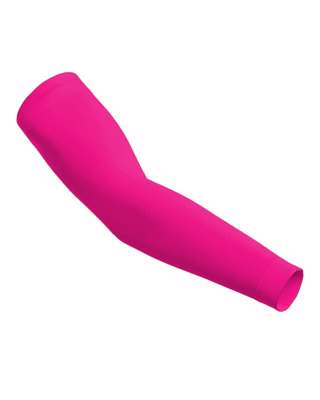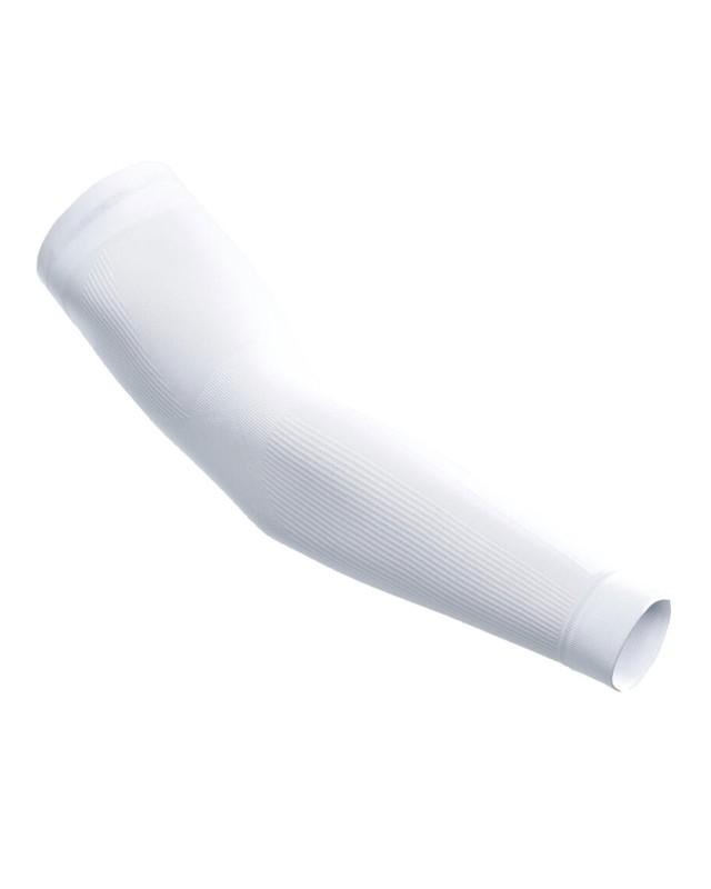 90% poliester 10% elastane. Coppia di manicotti adatti allo sport, fattore di protezione solare 40+, inserita in pratica bustina (etichetta applicata sulla busta).