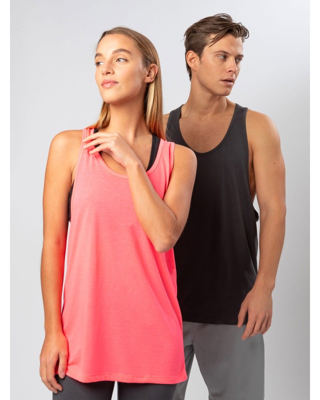 100% cotone. Canotta unisex ideale per sport e spiaggia con un ampio giromanica. Etichetta strappabile. Colori fluo 100% poliestere.